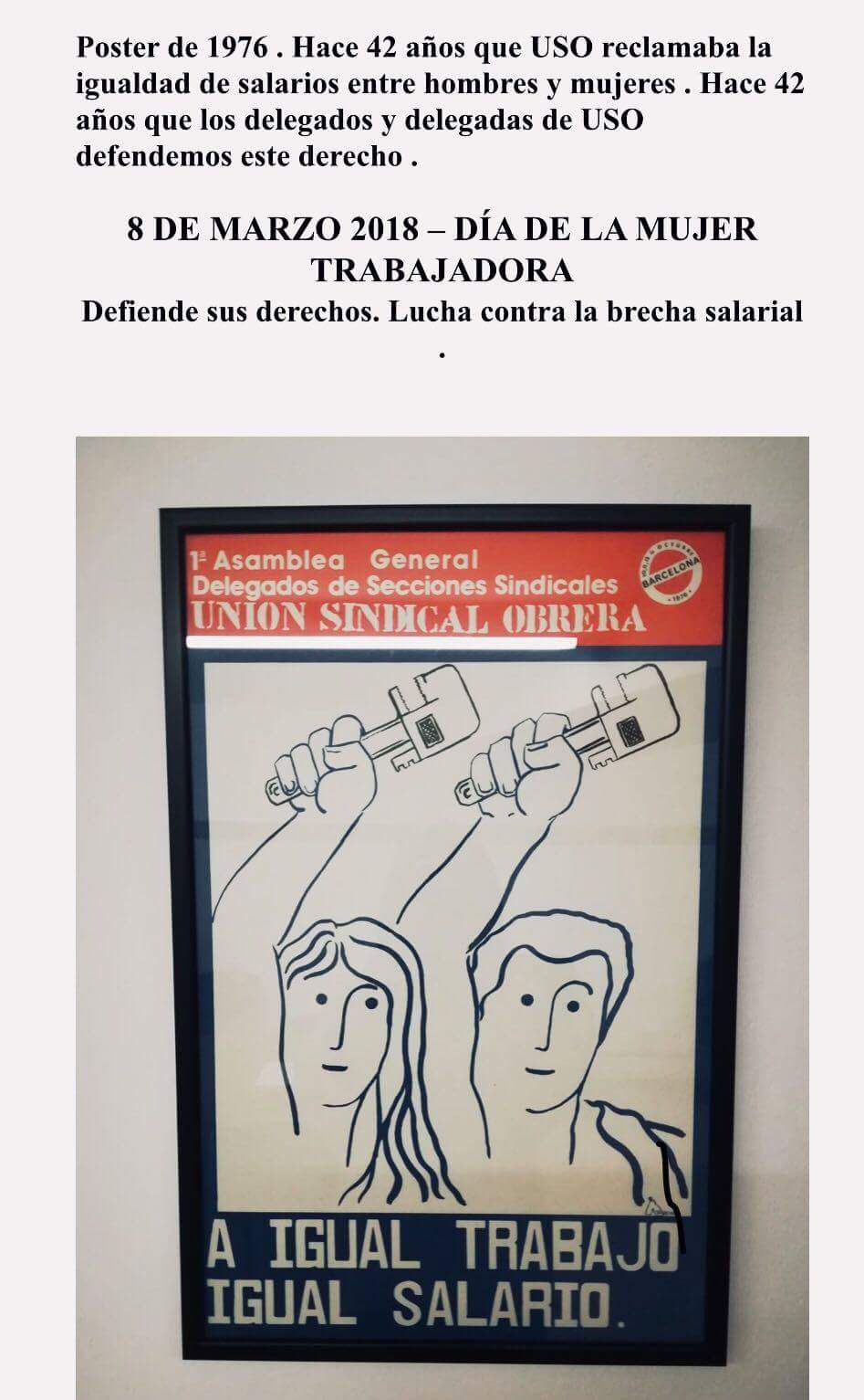 Hace 42 años, la USO ya defendía la igualdad salarial entre hombres y mujeres...como muestra, el siguiente cartel de la época, en concreto de 1976